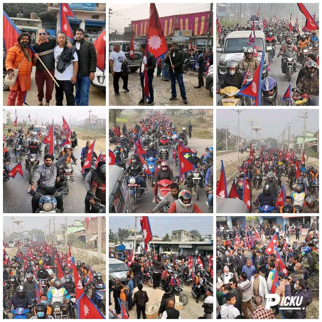 राजसंस्था फर्काउन माग गर्दै पश्चिम नवलपरासीमा मोटरसाइकल र्‍याली निकालेका छन् ।